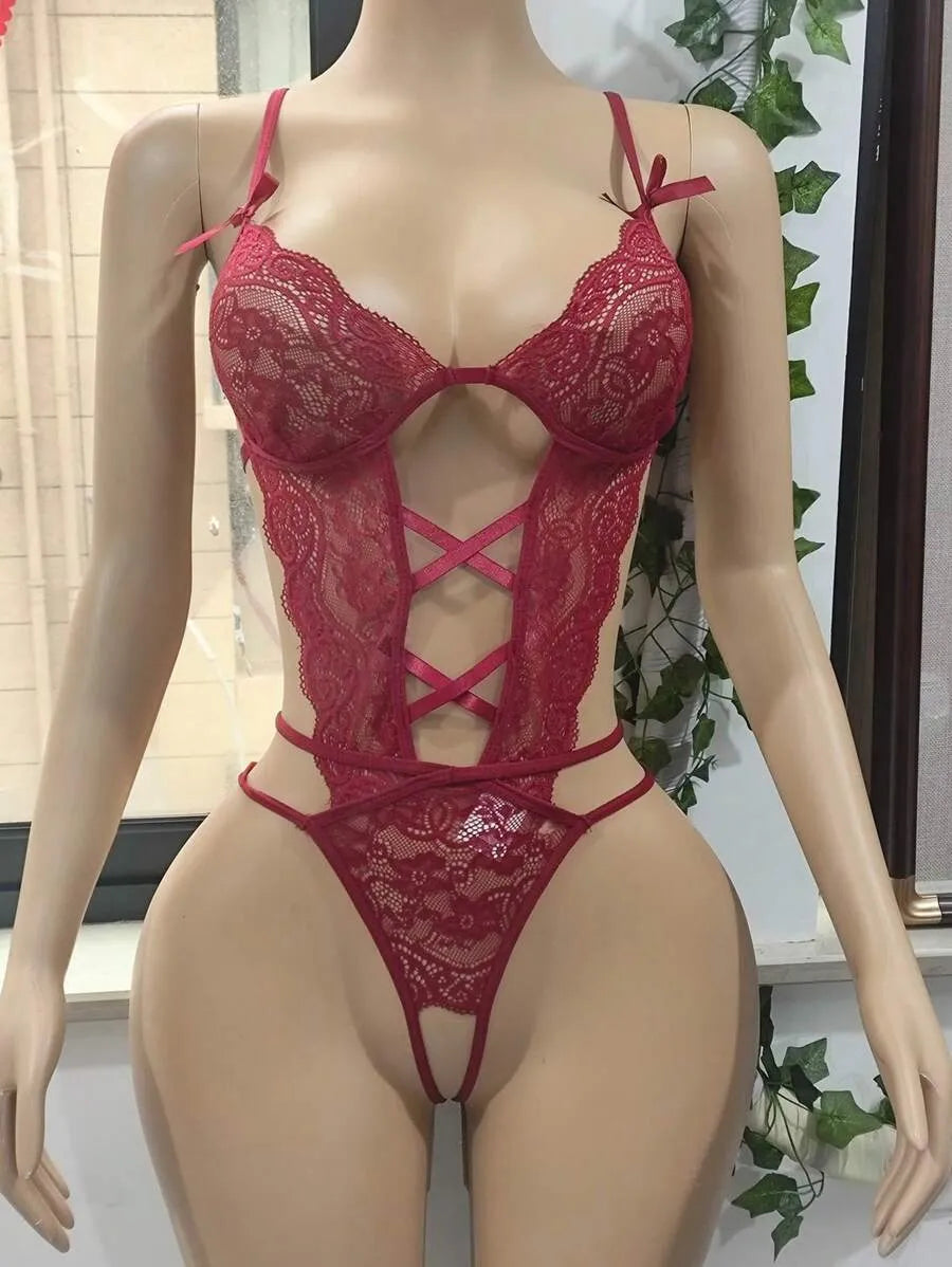 1pc Lace Sexy Hollow Jumpsuit – Women’s Sheer Suspender Lingerie, Temptation Pajamas