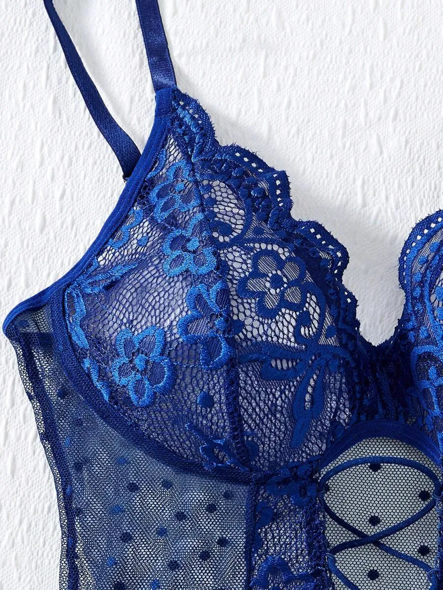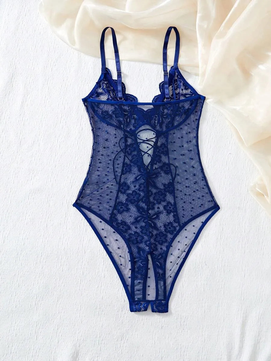 Lace Contrast Mesh Sexy One-Piece Lingerie Bodysuit – Women's Elegant & Seductive Wear