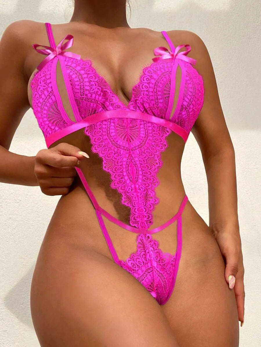 Classic Sexy Cut-Out Bow Teddy Bodysuit – Elegant One-Piece Lingerie