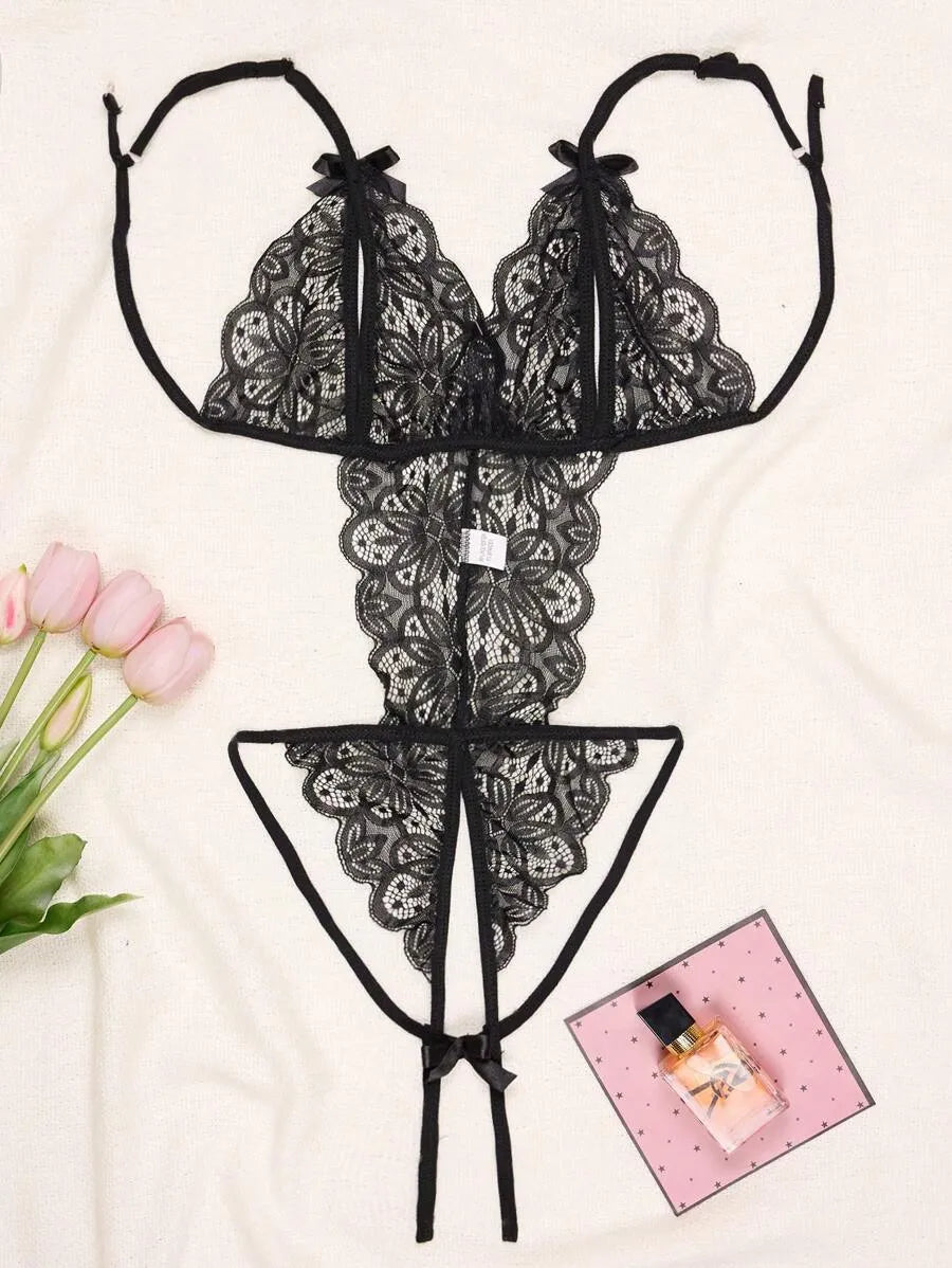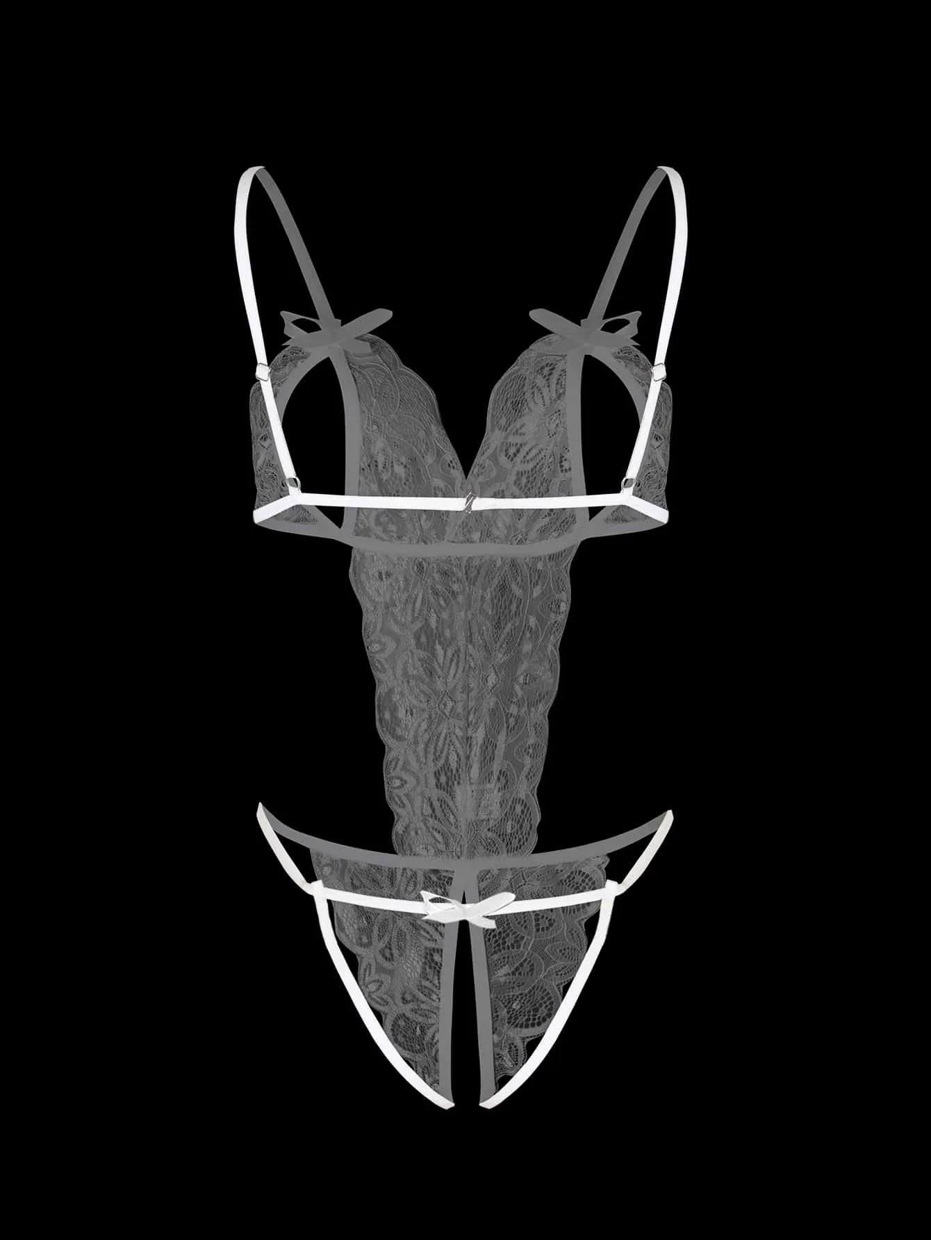 Women’s Lace Open Crotch Bodysuit – Sexy See-Through Lingerie with Breast & Body Coverage